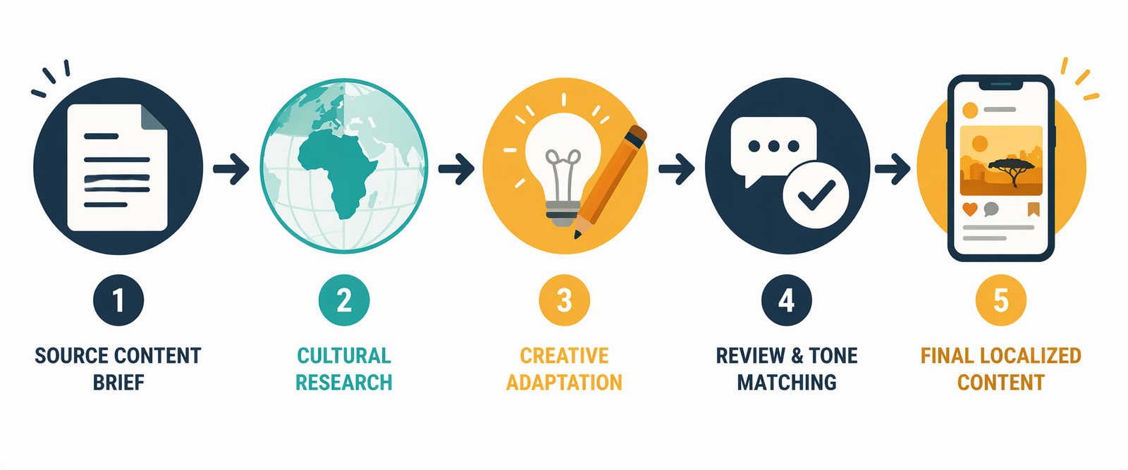 Adjusting tone for cultural registers. The degree of formality, the use of humor, the role of authority figures, and the appropriate level of emotional directness all differ across African regions and language groups. Transcreation calibrates these elements deliberately.
